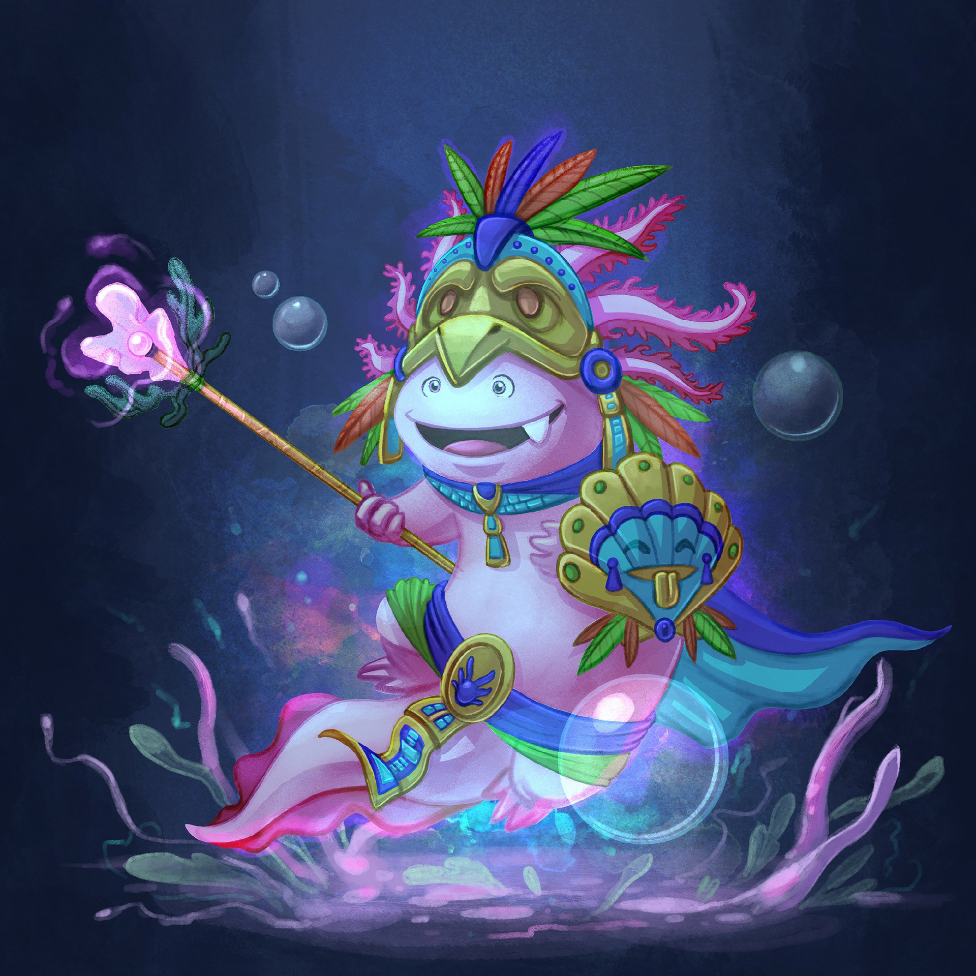 I worked this Axolotl Aztec Warrior for the Character Design Challenge #69: Aztec Warrior.