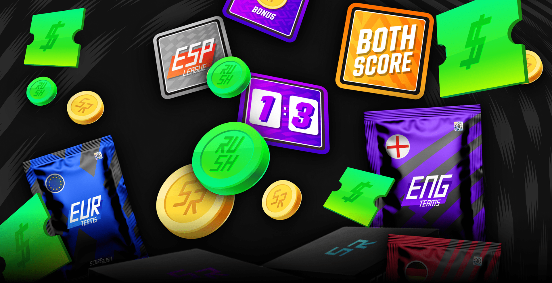When I joined the project, Score Rush already had new branding and app development in production. As a Creative Designer, my goal was to support the production of several assets to be used in the app. Some of them changed a bit during development, giving me the opportunity to propose small changes that were always aligned with the previously designed brand. I also had the chance to animate and illustrate some of these elements to create more interaction and immersion for users.